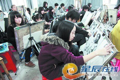 11月20日,参加2012年高考的湖南考生就要报名了。而2012年高考艺术专业考试,也将在一个多月后拉开序幕。准备参加艺考的高三学生或复读学生,已纷纷从湖南各地集聚到岳麓山脚下,开始了紧张的备战。