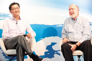 KK:我非常感兴趣的是信息技术,比如对人体健康产生的影响。社会趋于老龄化,科技的发展可以改善人们的健康状况。我现在所配戴的是一个小的设备,它能够不断地检测我的健康状况。我相信某些健康信息产品会在中国有大的市场。
