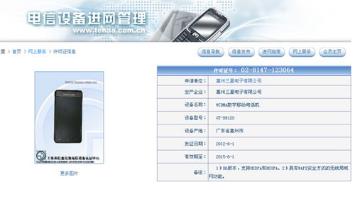网友若查阅工信部负责设备检测的电信设备认证中心,可发现近日有一款三星公司申请的WCDMA制式手机外型与之前披露的联通顶级商务手机非常像,且三星很久没再出产这种大屏折叠机,因此,可判断这就是三星为联通定制的年度顶级手机。根据其进网申请时的相关说明,这款手机型号为GT-B9120。