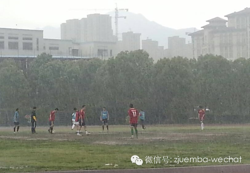 比赛过程中下起了瓢泼大雨,由于赛场是天然草场,雨后场地已经泥泞不堪,后面两轮比赛,大家都在堪称泥潭的场地中进行比赛。泥泞的赛场并没有阻碍大家对赛事的热情,反而激发出更多激情与乐趣。竞争之激烈,拼抢之积极绝不亚于那些职业足球运动员之下。尽管随时都可能会摔倒,随时会溅一脸泥水,但依然可以让这些狂热的足球爱好者乐在其中,美在其中。也正是因为如此,大家都非常认真投入,才能够真正体会到足球的乐趣之所在,才能够真正享受足球给予自己的快乐。