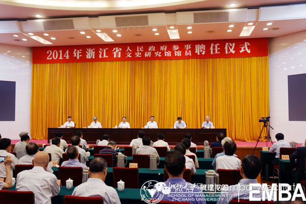 8月13日,2014年浙江省人民政府参事聘任仪式在省人民大会堂举行,浙江大学管理学院教授、EMBA教育中心主任贲圣林博士受聘为省政府参事,同时受聘的还有来自教育、科技、农业、民族宗教等领域的12位专家。