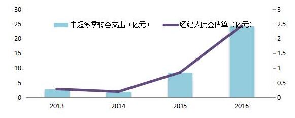 中介及培训:体育经纪、体育培训这两块在国内发展都均初期,但潜力很大。万国击剑,宏远时代体育都属于耕耘体育培训市场多年的企业,虽未曾出现所谓的爆发,但一直稳健盈利并增长,资本突然意识到:平淡才是幸福哇。体育经纪这个领域由中超率先点燃,2016年中超砸出了24亿(约为2015年的三倍)的转会支出更是预示着中超各球队军备竞赛的不断升级。按照10%的转会佣金比例来计算,中超体育经纪市场在2016年达到了2.4亿的规模。