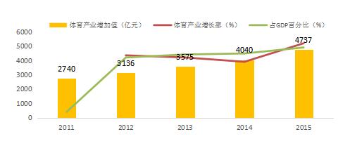 ? 2015年,我国体育总产值1.8万亿元,产业增加值占当年GDP比为0.7%,远低于同期美国水平(3%)及全球平均水平(2.1%);