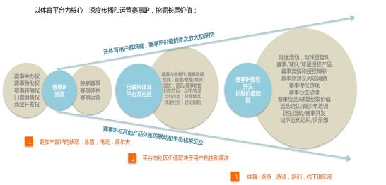 体育传媒:这个是价值积聚环节,广告赞助冠名被诸多企业玩的手到擒来,其实这个环节难度不小,一方面你得有资源(赛事,俱乐部,体育明星),另一方面你还得有客户(大企业才有赞助体育资源的动力和实力),而且你还得具备体育营销的经验和能力,帮助客户找到最合适的投钱对象,实现每一分钱的价值最大化,不然就会OUT出局啦。后面还会谈到,这里先简略。