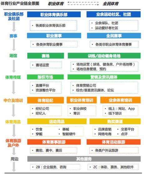 职业俱乐部及社团:职业俱乐部当然是大产业资本玩的,不过能不能玩得转就得看本事了,俱乐部经营需要相当的专业功底,不是有钱就行的,俱乐部所处的赛事体系,受众基础,对外商务,球员经纪,球队训练,比赛策略,另外,不得不提的是,诸多俱乐部是在亏钱的情形下运营的,例如中超球队中仅2支球队处在盈利状态。相比起来,业余社团运营自然不耗金,但也不挣钱。职业俱乐部运营的成功在于把技术不行亏钱厉害没有名气缺乏粉丝的球队运营成为挣钱的组织,而业务社团的机会对于中小型企业来说或许更有魅力,选择群众基础好的或者潜在人群广的项目,让业务逐渐走向专业,让傻吆喝变成商业价值聚合体,最后变成明星赛事,这种模式在美国可以找到不少参考案例。