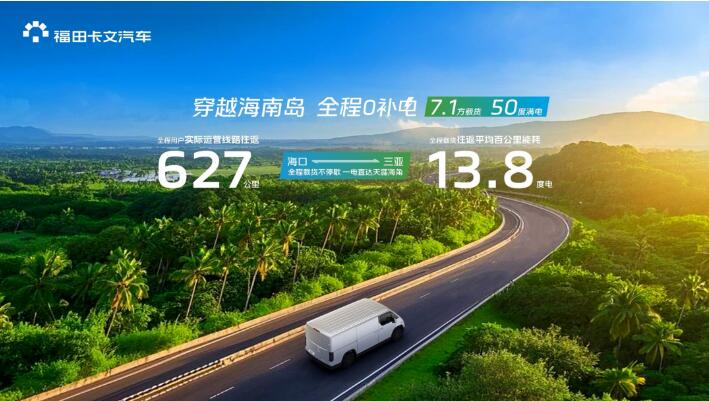 挑战成功 | 穿越海南岛,直达0补电!福田卡文乐福实现600KM+单日往返海口-三亚