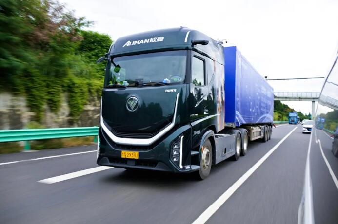 福康13L 620大马力混动专用发动机的热效率突破50%,比油耗低至169g/kW·h,发动机节油可达5%。干线运输工况下,当车辆低速行驶时,系统能智能切换至纯电模式,减少发动机启停与怠速油耗,使长时间巡航更加顺畅、经济。得益于混动系统的高效协同,银河9能够保持发动机始终运行在最优燃烧区间,稳定输出同时降低油耗,让干线运输更节能、更稳定。