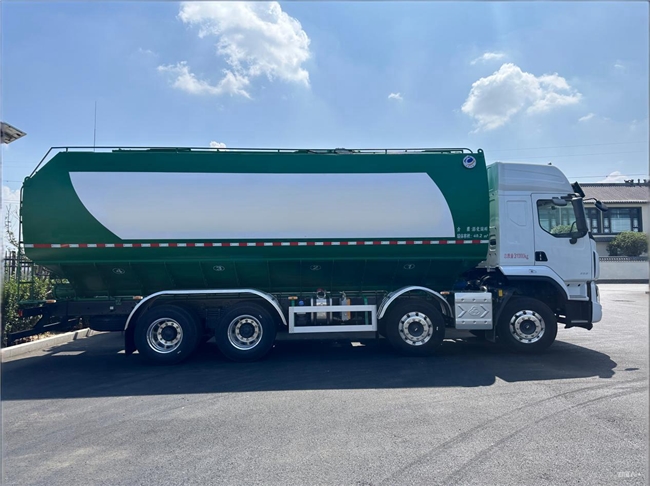 怕卸料太复杂?乘龙H5 8x4散装饲料运输车给你准备了两套方案。要是场站有固定电源,那就选电动上装,接上380伏电就能用,成本低,没有动力损耗,还能选装发电机,开到哪儿都能自己发电。要是天天跑不同养殖场,也没有固定电源,那么液压上装更顺手。打着火,怠速就能卸料,不用找电源,速度快,特别适合转场多、赶时间的活儿。