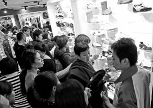 银泰11周年店庆,众多市民前来买鞋(资料图片)。记者 王增芳 摄