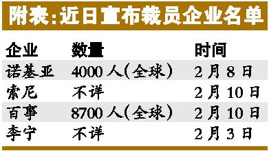 而据外电报道,将于今年4月1日履新的索尼总裁兼首席执行官平井一夫星期四表示,在各个不同领域进行裁员和削减固定支出,让面临着第四年连续亏损的索尼实现复兴,但裁员人数没有明确透露。此外,一直高速发展的中国房地产行业在春节前后则传出了多家企业裁员的消息。