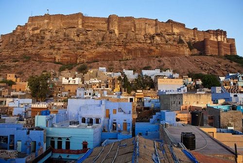 在绵延沙漠和蓝天之间,黄色使得城堡在古朴苍凉中增加了宏大气势。富有黄金城市之称的杰伊瑟尔梅尔,是吉普赛和印度游吟歌舞者的故乡,保存了北印度原生态的音乐形式,主要以宗教节庆歌谣,游吟诗人的叙事曲,和当地的卡塔克舞蹈著称。而蓝色城堡焦特布尔,则位于塔尔大沙漠的边缘。站在城内的梅兰格尔城堡上,俯瞰老城区,就会看到一片靛蓝色的民居,如同童话里的故事背景。整个蓝色城区貌似一道道迷宫,在这些宛如一团乱麻似的道路上闲逛,令人如痴如醉,流连忘返。