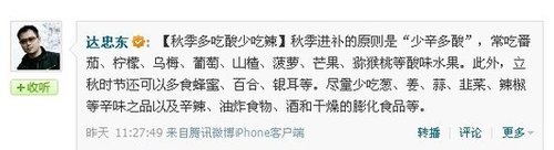 也有博主给出了秋季进补的正确建议。博主“达忠东”就建议大家“秋季进补的原则是“少辛多酸”,常吃番茄、柠檬、乌梅、葡萄、山楂、菠萝、芒果、猕猴桃等酸味水果。此外,立秋时节还可以多食蜂蜜、百合、银耳等。尽量少吃葱、姜、蒜、韭菜、辣椒等辛味之品以及辛辣、油炸食物、酒和干燥的膨化食品等。”