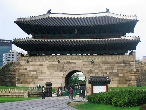 崇礼门位于韩国首都首尔市中区南大门路4街9号,它是韩国第1号国宝,一般叫作南大门。南大门在诸多城门中规模最大,以平滑的巨石堆砌而成的石阶中央有一个拱形的入口,石阶上有柱子和屋顶,分上下两层。东西两边也有可以互通的门。台上两边有绿草坪,标志着已不复存在的城墙的痕迹。同时它邻近平民化的南大门市场,为首尔以至韩国的一个主要地标。崇礼门是早年汉城四座城门之中规模最大的城门,亦是首尔留存历史最悠久的木造建筑物。