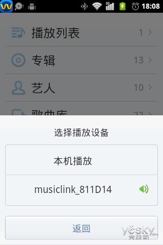 打开音乐播放软件“无限播”,在播放界面中选择MUSIC LINK作为外放设备即可。