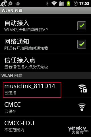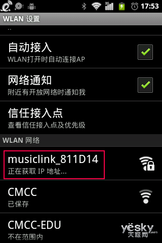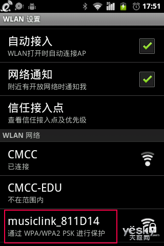 3、将您的播放设备联接无线路由器或者本机(MUSICLINK),即可实现上网浏览及无线音乐播放。安卓设备只允许联接本机进行WIFI音乐传送。