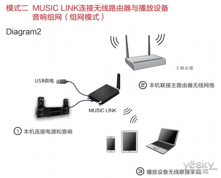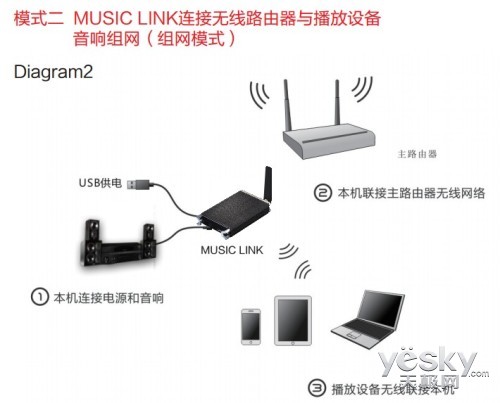 模式二 MUSIC LINK连接无线路由器与播放设备音响组网(组网模式)