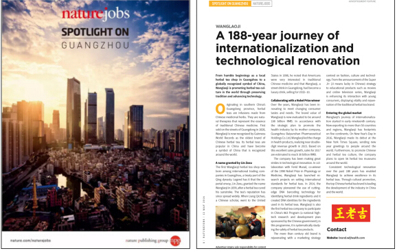 据了解,《Nature》广州特刊选择王老吉凉茶作为广州城市名片,不仅看中的是王老吉所代表着的中国传统文化,同时也肯定了王老吉作为世界流行饮品在生产工艺上的不断创新。在《Nature》刊文中详尽阐述了,作为拥有188年历史、有“凉茶王”之称的王老吉,是如何经过时间的洗礼,在传承与发展中,利用现代科技创新,通过多个行业首创,深挖产品,从岭南一隅发展成为风靡全国、走向国际的健康饮品。
