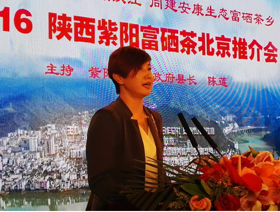 紫阳县县长陈莲主持2016紫阳富硒茶北京推介会
