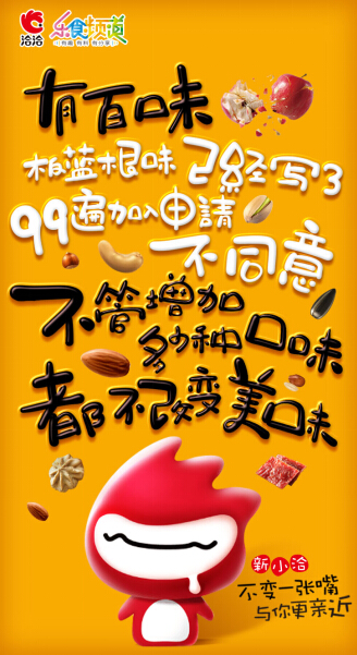 相关人士分析,洽洽此举这主要是出于品牌定位的考虑。洽洽电商新形象的设定是年龄8岁、热爱生活、贪玩热情,而伴随新形象一起发布的,还有洽洽电商的宣传口号:有趣、有料、有分享,所以这组海报从使用语言到“撩拨”程度,都比较符合这种设定,品牌性格跃然纸上。