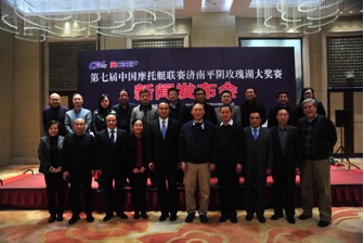 12月16日,第七届中国摩托艇联赛济南平阴玫瑰湖大奖赛新闻发布会在京举行,会上宣布本届赛事将于2017年6月拉开战幕,届时来自全国各地的多支摩托艇赛队将齐聚在山东省平阴县黄河玫瑰湖公园,为观众们献上一场极具速度与激情的视觉盛宴。据悉, 国家体育总局水上运动管理中心五部部长姚新培,中国摩托艇运动协会秘书长万红军,济南市体育局副局长刘雅涵,平阴县人民政府代县长焦卫星,平阴县人民政府副县长李子元,山东瑞浦实业集团有限公司副总经理刘飞,山东乾跃体育产业有限公司总经理李峰等领导出席了本次新闻发布会,同时出席并参与报道的还有中央电视台、北京电视台、人民日报、工人日报、新华社、中新社、央视网等30余家新闻媒体。