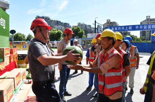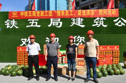 时值盛夏,骄阳似火,酷热难当。为保证全局施工生产的顺利推进,切实维护高温期间广大职工和农民工的身体健康和生产安全,7月17日上午,中铁五局党政工团慰问组到建筑公司杭州片区余杭区余政储出18、30号地块项目部开展“情系员工,夏送清凉”慰问活动,为仍然战高温,斗酷暑,坚守岗位,顽强拼搏在施工生产一线的广大职工和劳务工送去组织的关怀和问候。