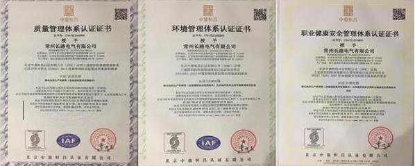 近日,常州长路电气有限公司一次性通过三项国际认证:ISO9001质量管理体系认证、ISO14001环境管理体系认证和OHSAS18001职业健康安全管理体系认证。