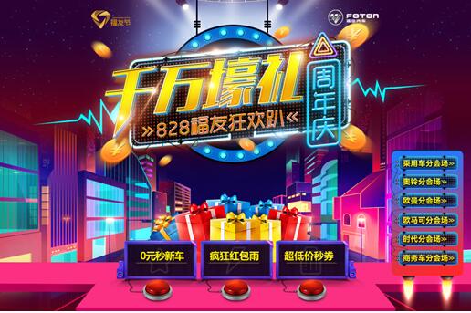 通过主会场,您还可以进入整车专场、配件专场、会员专场、服务专场四大专场与车主有礼活动。此外,福田汽车还在乘用车、奥铃、欧曼、欧马可、时代、商务车六大品牌官网设置分会场,场场均有好礼相送,充分满足不同品牌用户的需求,以最大“福”利回馈客户。