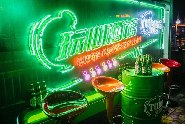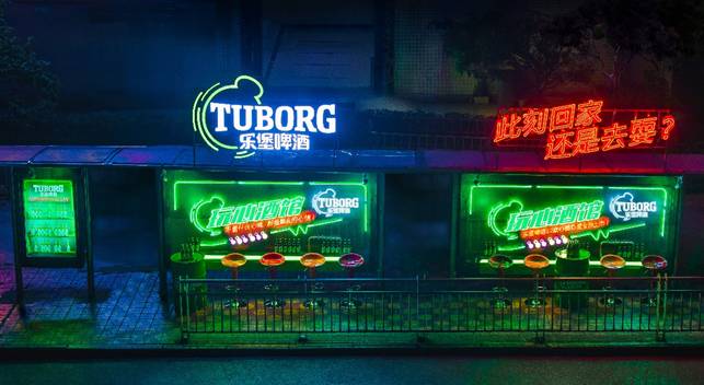 近日,平日里不起眼的重庆南坪枢纽公交站被一夜之间华丽改造,变身为灯红酒绿的乐堡啤酒玩心酒馆,刷爆了重庆的朋友圈。从路边平地而起的酒馆炫彩夺目,不但吸引了乘客纷纷逗留拍照,就连重庆的潮男靓女也特地相约前来打卡,这座车站酒馆俨然成了城中大热的观光点。