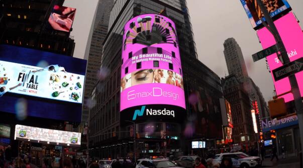 美国当地时间2018年11月29日,EmaxDesign品牌巨幅宣传照片登陆这一被看做财富实力和发展潜力象征的纳斯达克大屏幕。