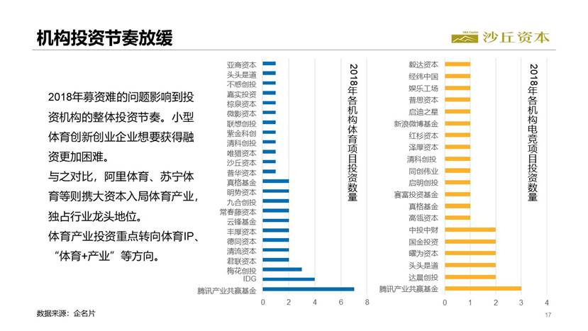 2018年全年沙丘资本都在观察体育市场,可以感受到投资机构在出手速度或者出手坚定度方面明显降低。为此,沙丘资本整合了各方面的资料,从数据角度来解读当下体育产业投资的状态。