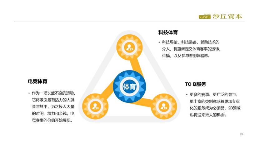 前面提到产业陷入低谷,业内未形成共识,未来发展通往何处意见没有统一。但我们认为体育产业还是存在一些新的增长点和闪光点。