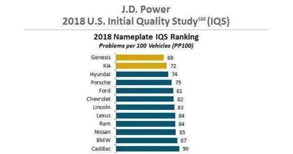 接下来,我们再看看J.D.Power发布的2018年中、美两国的新车质量研究报告。
