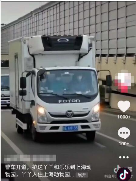 从视频中看到,车内3位工作人员均身穿防护服,应该是随车照料“丫丫”起居的饲养员与兽医,从车辆牌照判断,极有可能是从北京动物园远道而来,专程赶赴上海。
