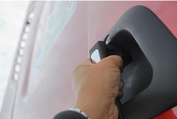 车门把手下拉式开门的设计,让拉门开关更省力,优化的倒角也不会让驾驶员在开门时夹到手。