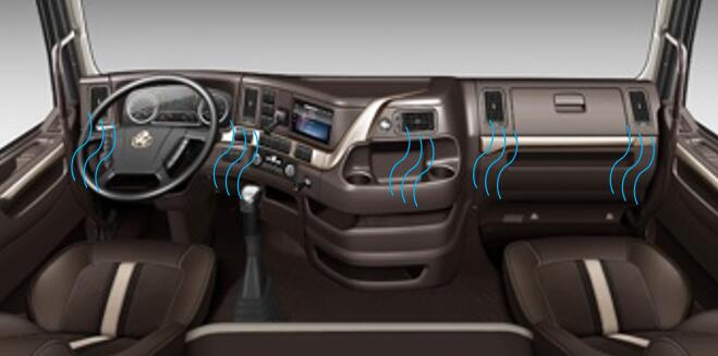 对于驾驶员而言,每天接触最多的地方莫过于座椅与方向盘,在这一方面的配置上,乘龙H7 LNG牵引车采用了多功能气囊座椅+多功能方向盘的方案。座椅表面采用高端皮革打造,带有软硬、高度调节,腰部支撑与通风加热功能也均有配备,长途驾车降低驾驶员疲劳程度。
