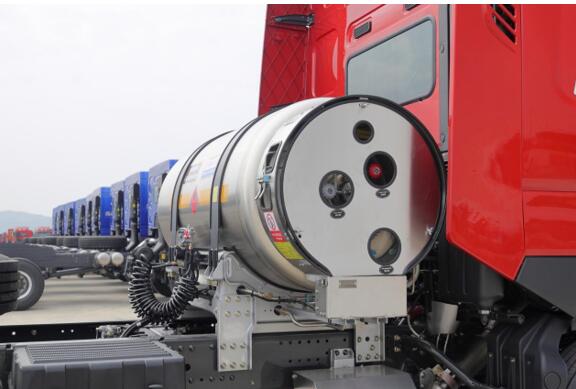 全车应用大量铝合金材质零部件,像储气筒、气瓶、后处理系统,另外全车均可选配铝合金轮毂,可进一步降低自重120kg+。