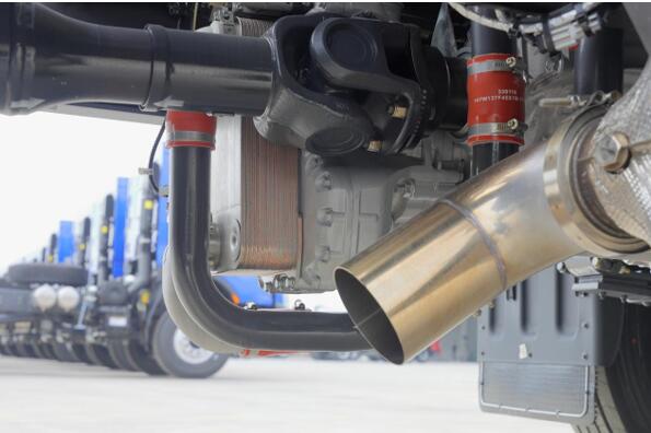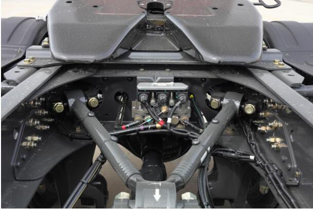 匹配12速变速箱,内部全同步器+全斜齿设计,挂挡轻便,全铝制壳体有利于降低整车自重以及给变速箱内部油液散热。变速箱可选配伊顿AMT、液力缓速器等配置,最大制动扭矩4000N.m,长下坡使用缓速器后可减少制动使用频率,降低制动系统磨损也发热,更安全的下坡。
