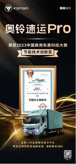 12月1日,2023 汽车电动化与智能化技术国际论坛在上海隆重举行。在分论坛第二届中国商用车黑科技大赛颁奖典礼暨商用车技术大会上,作为国内商用车知名品牌,福田奥铃旗下全新一代速运Pro轻卡凭借率先达到四阶段油耗技术优势,斩获“节能技术创新奖”。